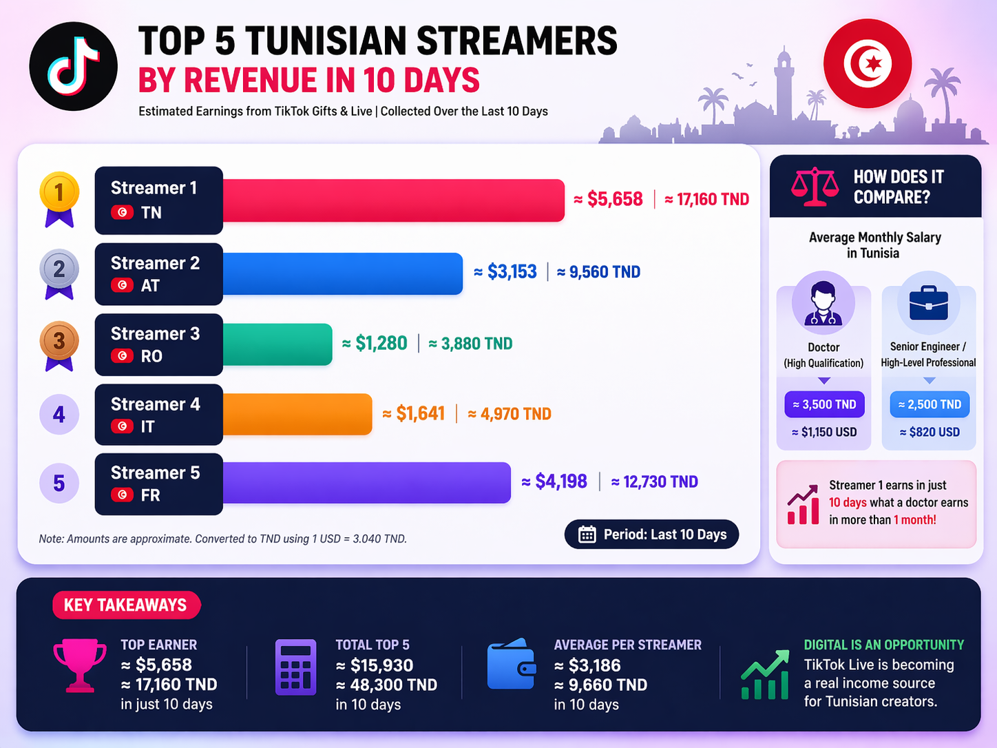 TikTok has become one of the most profitable platforms in Tunisia. Large livestreamers can receive hundreds or even thousands of dollars in gifts every week.